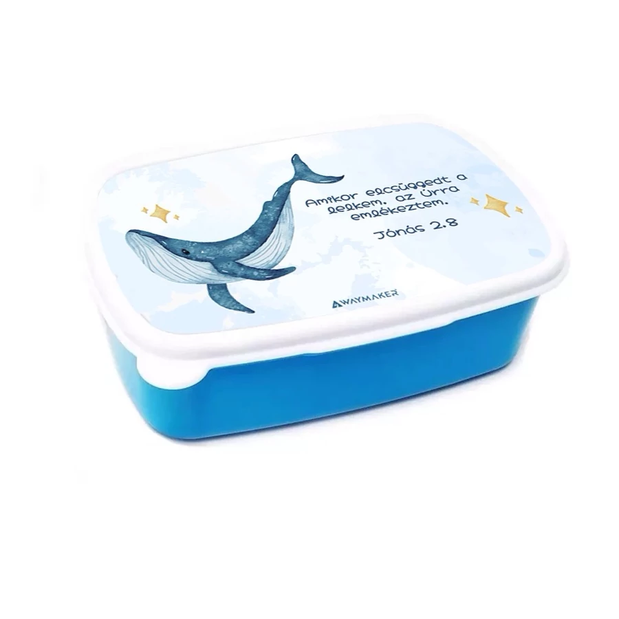 Műanyag uzsonnás doboz, bálna mintával.