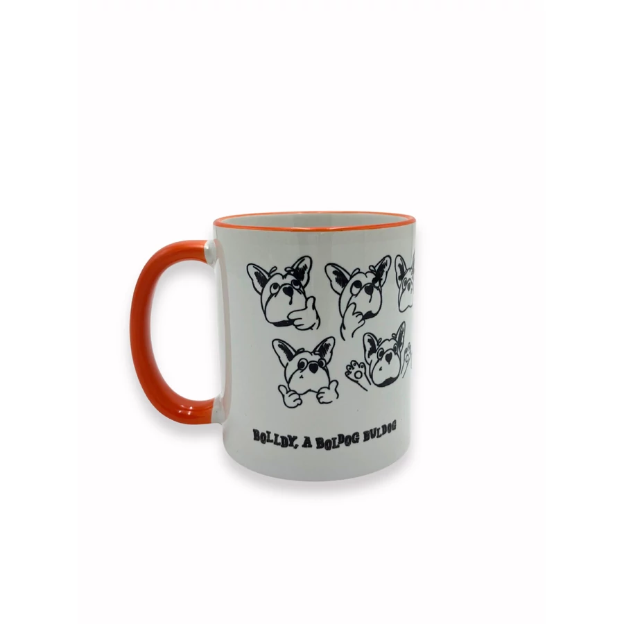 Bolldy, a boldog buldog – kerámiabögre, fehér narancssárga füllel.