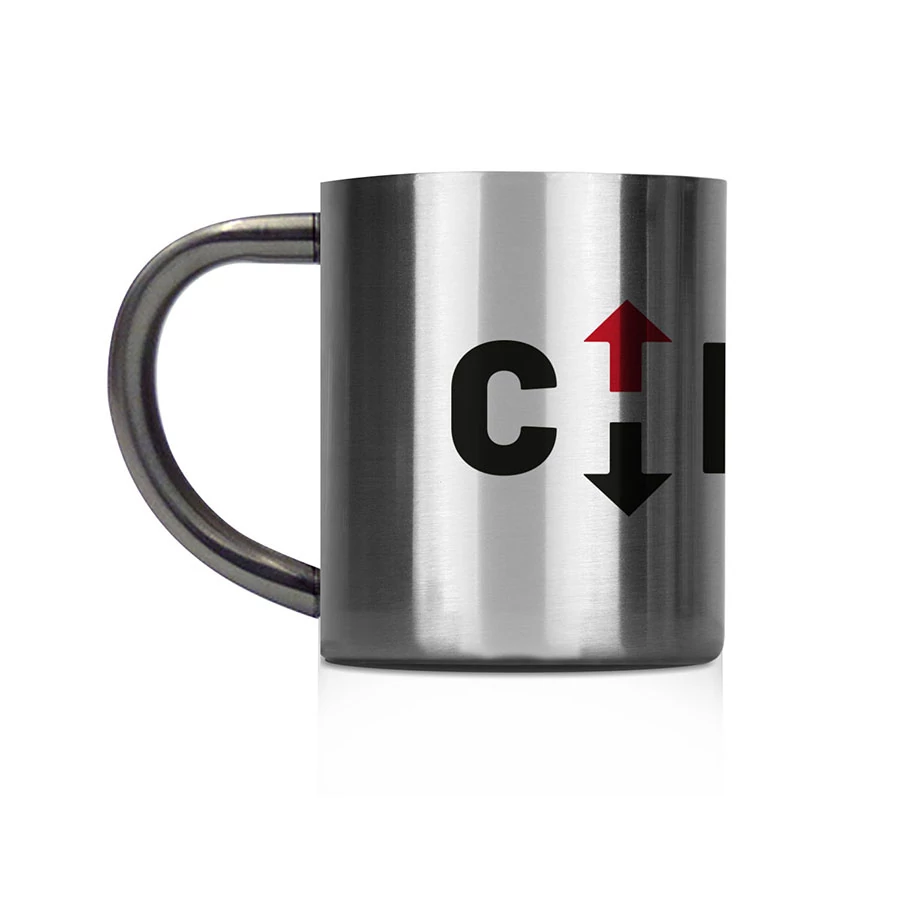 Rozsdamentes acélból készült bögre, 200 ml. Dobozban szállítjuk.