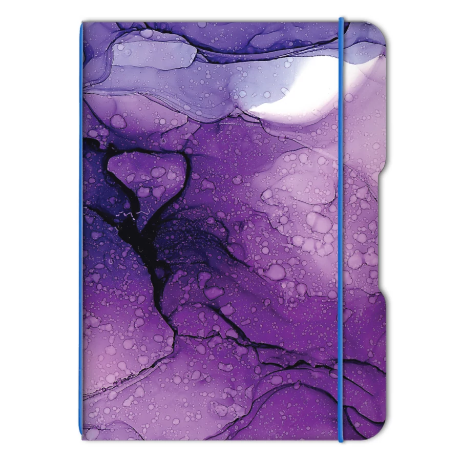 Tartalma: 1 borító, 2 rögzítőgumi, 1 gumipánt, 1 vonalas belső, 1 négyzethálós belső (80-80 oldal).