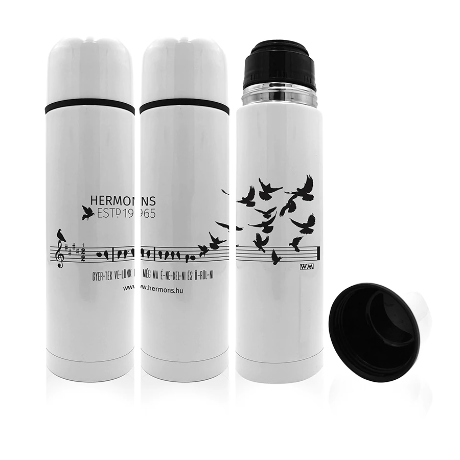 1 db rozsdamentes acél termosz Hermons-énekidézettel.