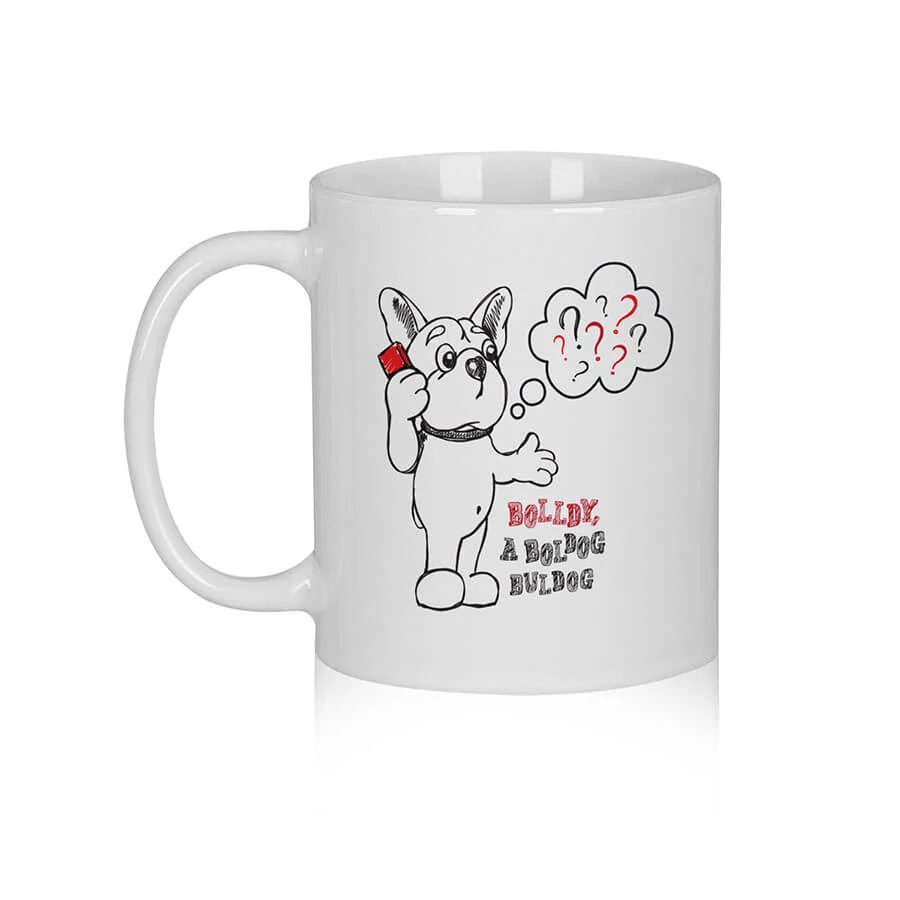 Bolldy, a boldog buldog – kerámiabögre, fehér.