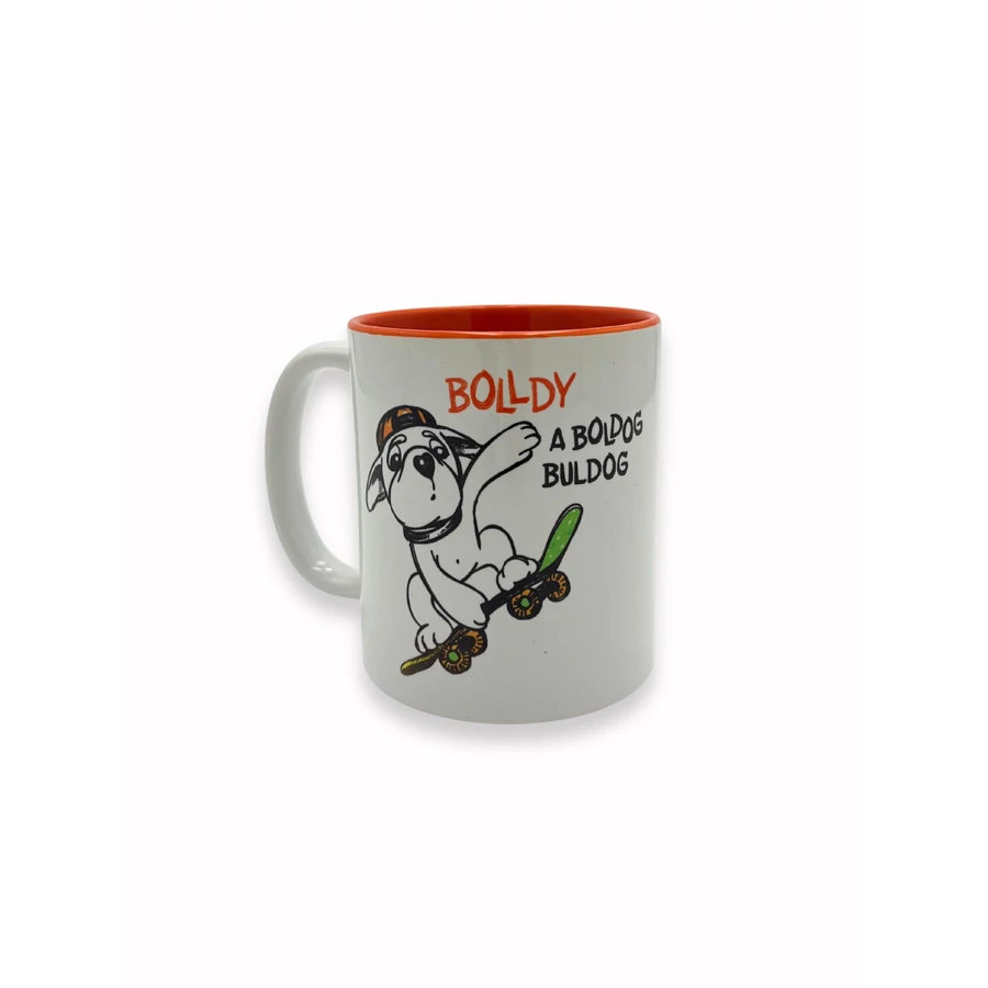Bolldy, a boldog buldog – kerámiabögre, fehér narancssárga belsővel.