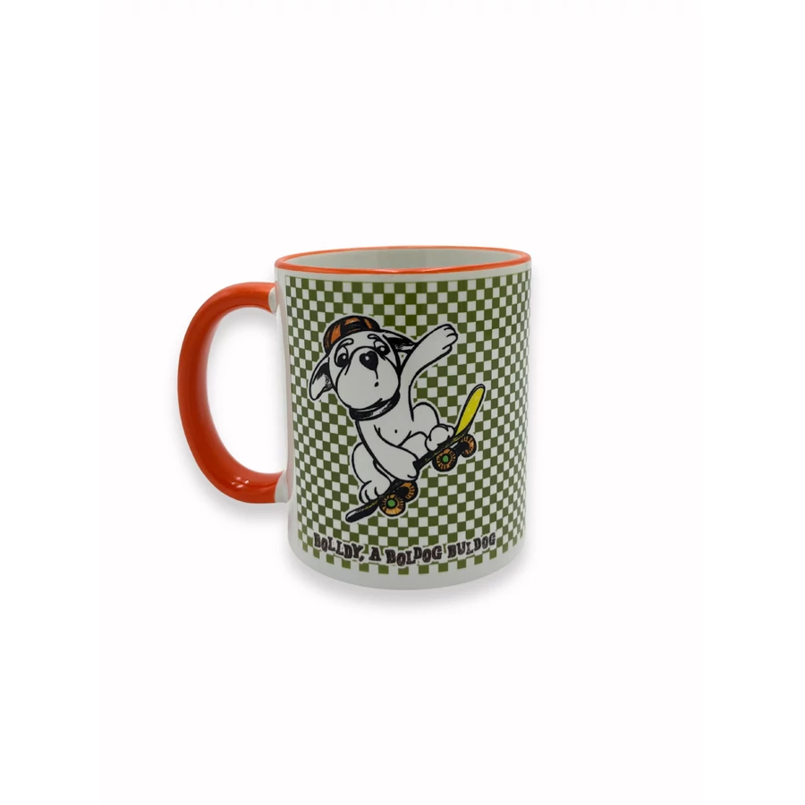 Bolldy, a boldog buldog – kerámiabögre, fehér narancssárga füllel.