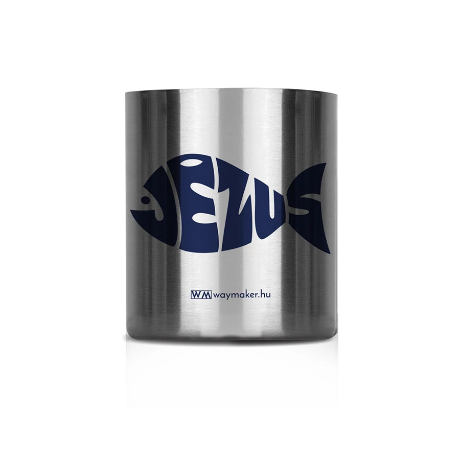 Fémbögre hal mintával. Felirat: „Jézus”.