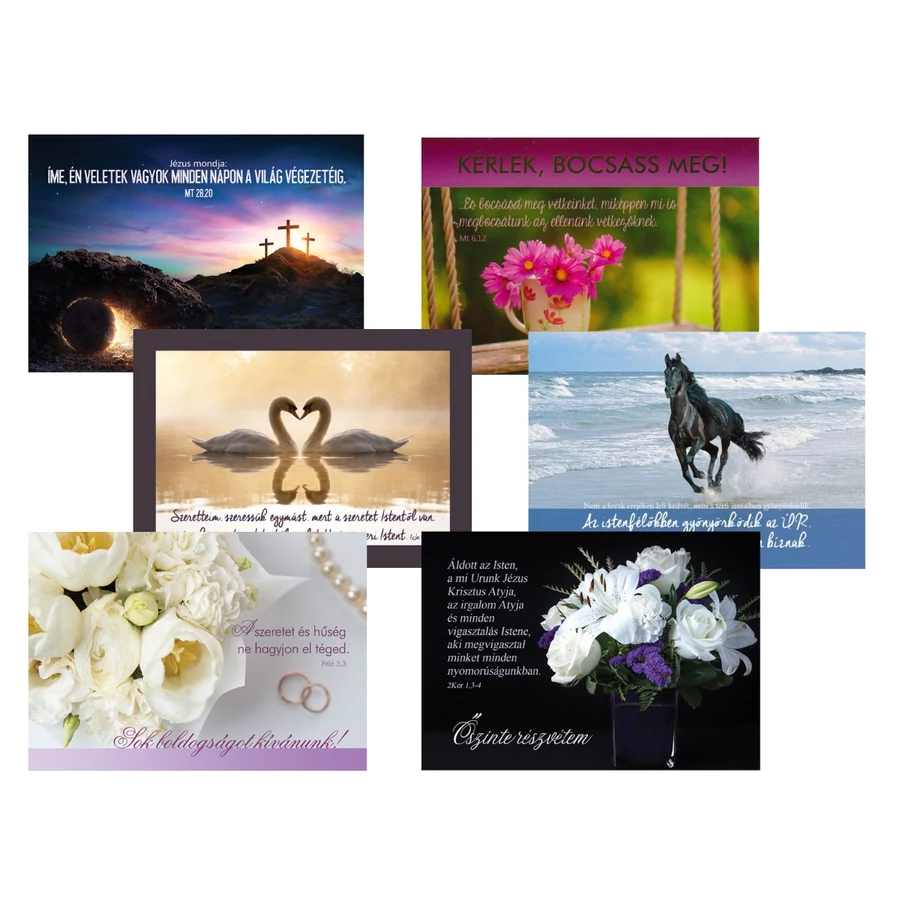 30 db / csomag. 6 féle képeslap, egyenként 5-5 db.