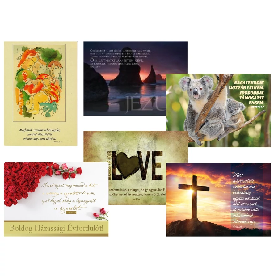30 db / csomag. 6 féle képeslap, egyenként 5-5 db.