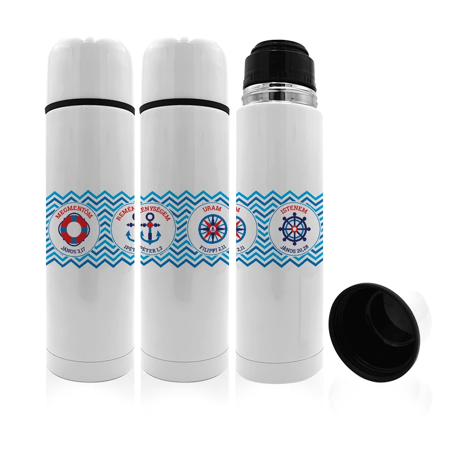 1 db rozsdamentes acél termosz vidám matrózmintával.