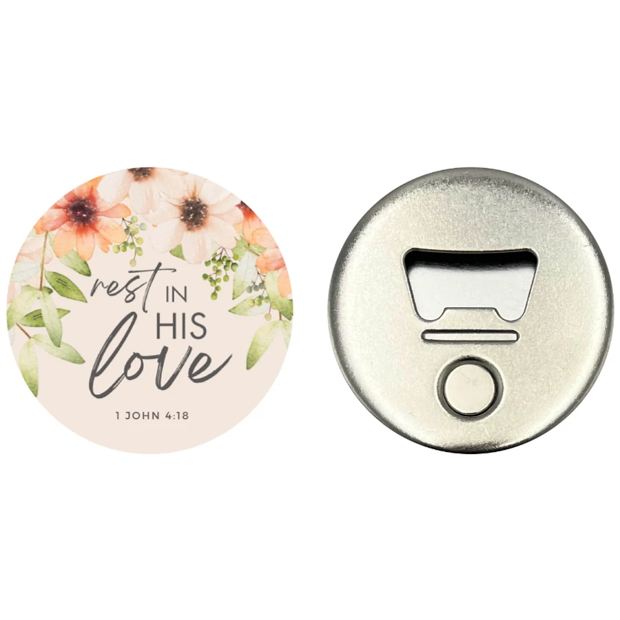 Rest in His love – Hűtőmágnes üvegnyitóval